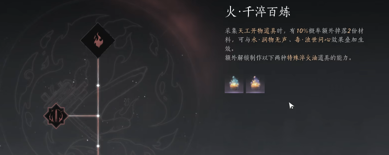 《燕云十六声》中的新天工开物在游戏里是非常好用的,分别是淬火油·灼焰&焚烬、淬水蜡·渊停&浩溟、淬毒散·鸠炎&凝煞,其实这些新天工开物的作用是很大的,首先是淬火油焚烬,消耗淬火油,攻击造成气血伤害提升1.5%。