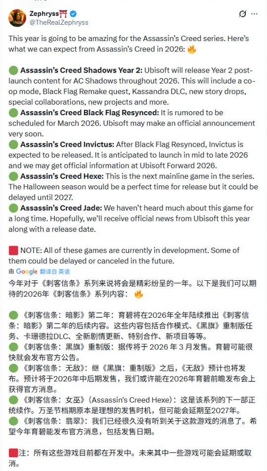 2026年对《刺客信条》来说或许是相当重要的一年,有网友总结了2026年可以期待的《刺客信条》系列内容: