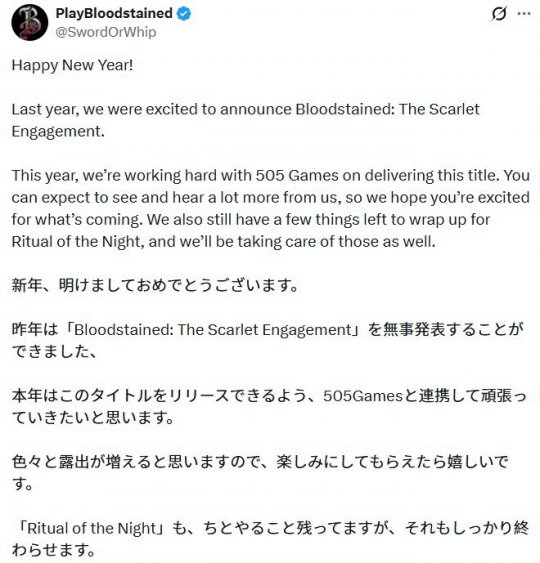 官方表示:去年我们公布了新作《赤痕:绯红契约》,今年我们将与505Games紧密合作,确保本作在2026年顺利发售。不久后会有更多情报公布,敬请期待。目前《夜之仪式》仍有部分工作待完成,我们也会认真收尾。”