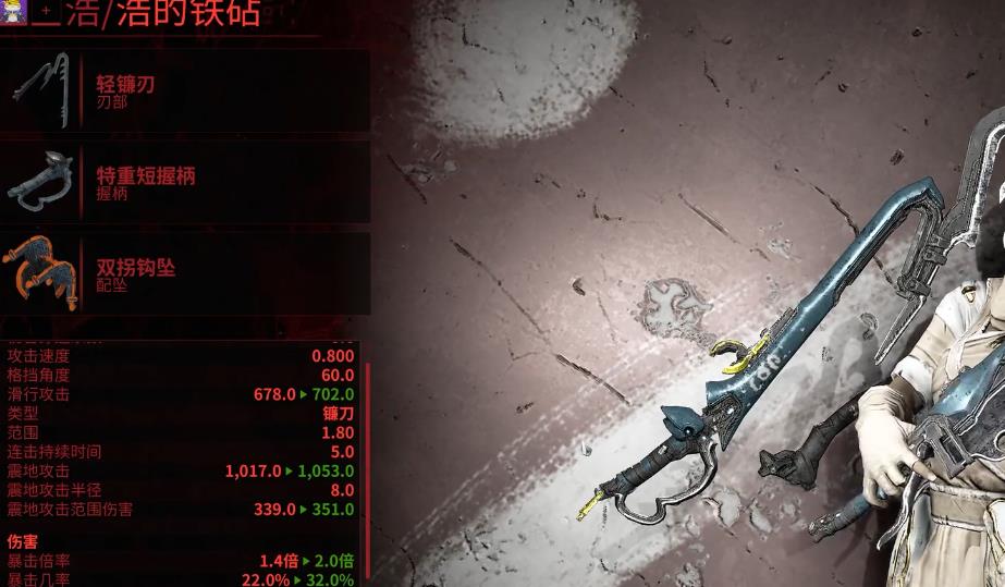 常用的武器搭配是重弯刃、轻长握柄、双拐扣坠,保证攻速一点零二,暴击几率在32%左右,基础伤害240就足够,而重弯刃是所有刀头里面紫卡倾向最高的。推荐紫卡为加暴击率的,选择基础伤害、暴击伤害与攻速等,没有紫卡的话还可以换成其他属性伤害的卡牌。最好是重弯刀冷酷寒潮、血色垂柳、高阶血压点、高阶狂热打击、北风、狂暴、牺牲斩铁、分割加速。