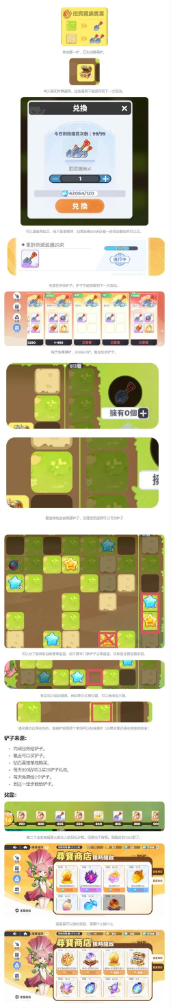活动中,步数即进度,每走一步均可累积产值,达到指定步数即可领取阶段奖励。铲子作为核心消耗道具,需谨慎使用——切勿为单独拾取星星而额外挖掘。每日可免费领取2把铲子,完成指定任务还可追加获取;若进度滞后,可通过800钻石兑换20把铲子。此外,每日18元礼包具备较高性价比,适合长期参与的玩家;临近目标差少量步数时,亦可灵活使用钻石补足铲子缺口。