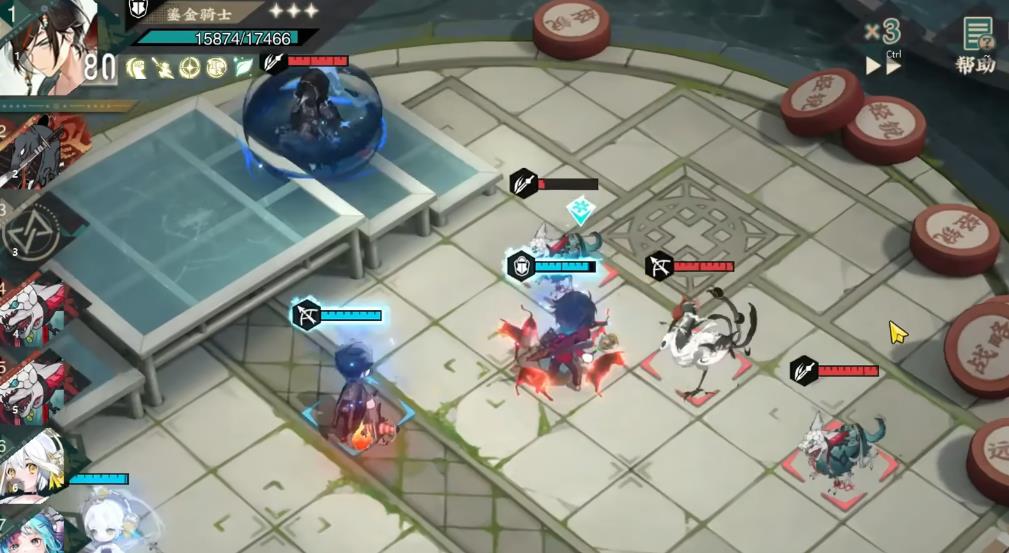 此时即便不拿下人头也会满能量,因为暴击会多给一点能量。而且额外行动回合也可以获得一层供奉,这样第三轮开始身上就拥有两层供奉了。香囊开职业技能奶,继续叠沐芳,万国开大并用常规攻击收掉一个,继续常攻补伤害。大神龛开狙击,三层供奉大招收头,继续前移常规攻击。