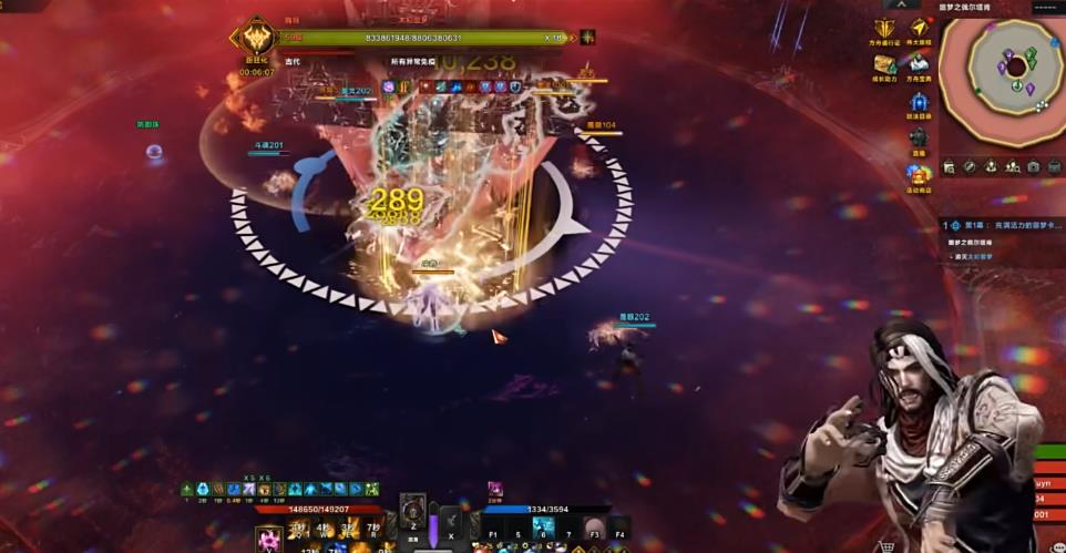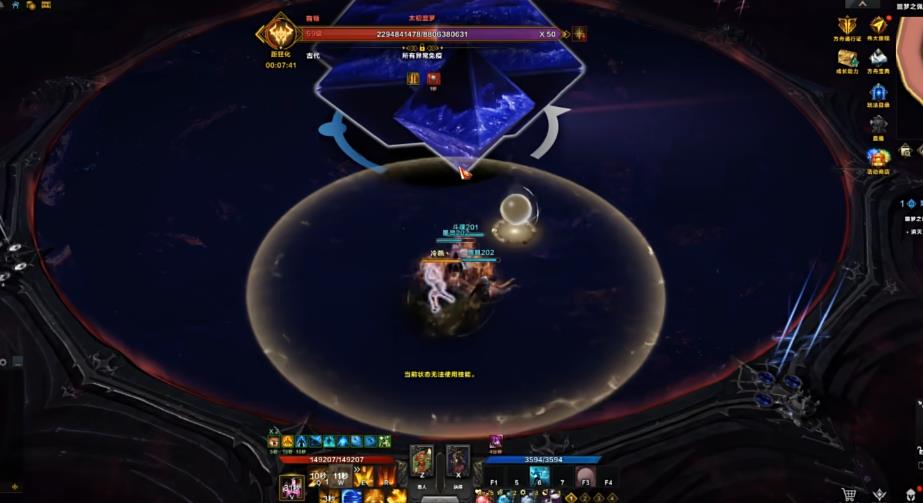 所以有金色护盾的玩家一定要挡好子弹,不能让子弹飞。boss在95与25管血条的时候,下面会解锁紫色的隐藏瘫痪条,需要在一分钟内打掉boss的紫条,倒数计时可以参考boss周围的白圈。团长可以在该机制下用C按键来召唤出伊南娜,清除减益状态的同时还可以抵挡部分boss的伤害。如果弱势队伍存活率比较低,可以使用CTRL加X按键来召唤维忆来辅助打瘫。