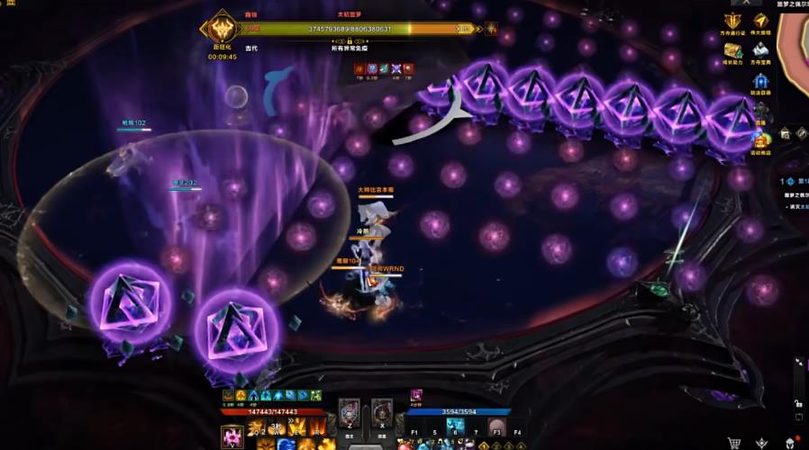 当梦幻军团长变为金魔方的时候,地图正上方与正下方会各浮现出周围环绕着旋转黑色碎片,且类似于小型黑洞的大黑球。此时团队需要分工行动,一队全员向地图上方移动,二队则奔赴下方,各自负责处理对应的黑球。该步骤的关键在于快速击破黑球,因此必须指派小队中输出能力最强的职业来执行击破。近战职业可先用破防技能削减防御再衔接大招爆发,远程职业则需注意预判确保技能命中。