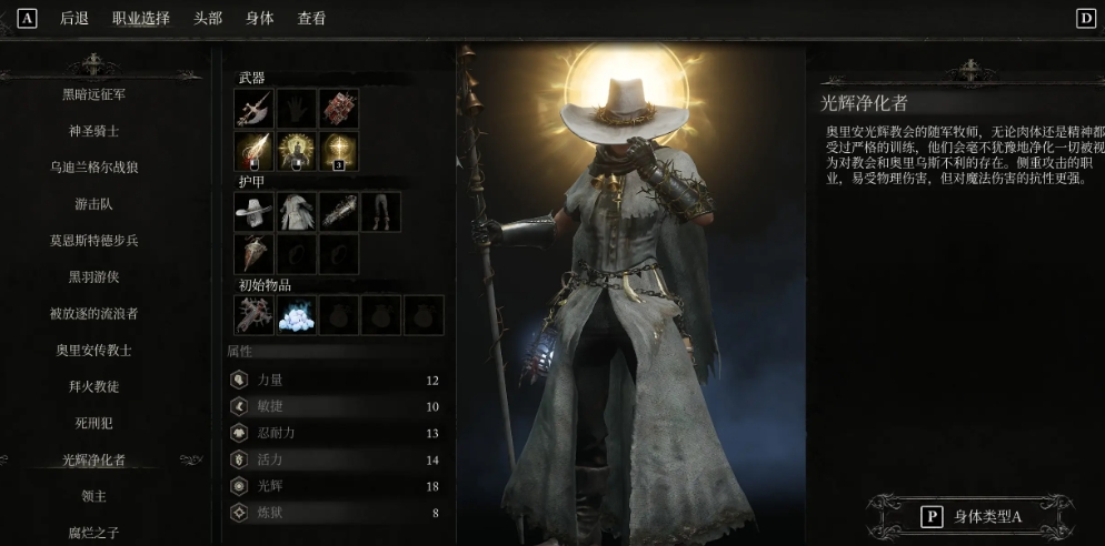 游戏中的装备主要分为五大类,分别是近战、远程、戒指、护甲和护身符,近战武器两个槽位分别代表右手和左手武器,同时盾牌能装备在左手,游玩时如果想临时更换主武器必须打开菜单切换。远程武器第一排槽位用来装备远武器本体,包括法器、弓弩和空手三大类,法器主要用来释放法术,弓弩是射箭,空手则用来释放手雷、标枪和飞刀等投掷物。