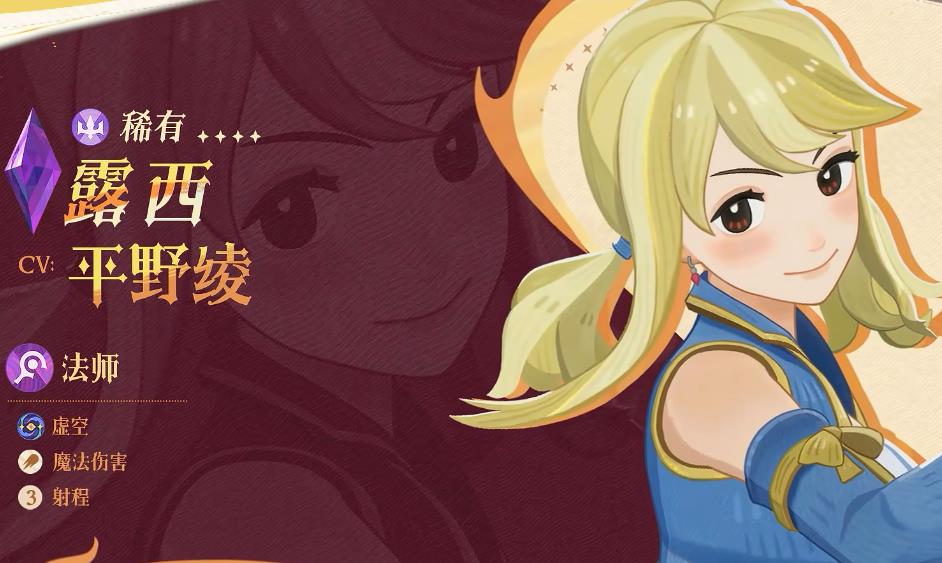 控制频繁且输出不弱,在赛季魔法配饰天赋加成下能打出不低的输出。在巨蚌里无法上阵,和纳兹一样,比较适合新手作为过渡输出使用。在PVP里面的评级为A+,控制频繁比较百搭,泛用性非常高,基本可以融入任意阵容作为控制副C登场,和迪尔格雷搭配较为优秀。露西启动快,推荐搭配双子、呼金、商人、迪尔格雷等,作为快速启动的控制输出体系。