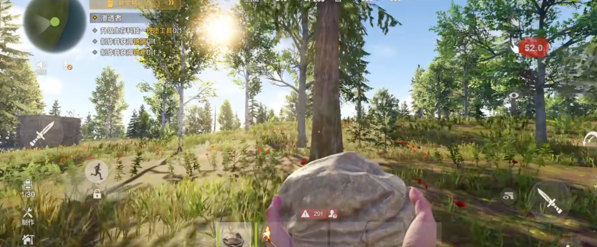 游戏核心围绕“生存驱动型成长”展开:开局仅有一块石头与一根木材,玩家需通过采集、合成、建造逐步拓展基地规模,完成从原始采集者到文明建设者的跃迁。角色状态系统实时追踪饥饿值、健康度、体温等关键指标;叠加动态天气系统与真实日照周期,环境变量深度影响探索效率、资源刷新及敌对单位行为逻辑,大幅提升策略深度与不可预测性。
