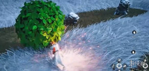 东北方位风滚草位于东北方向发光石狮的后方岩石旁,距离石狮约5米,被攻击2次后会变大且移动速度变慢。