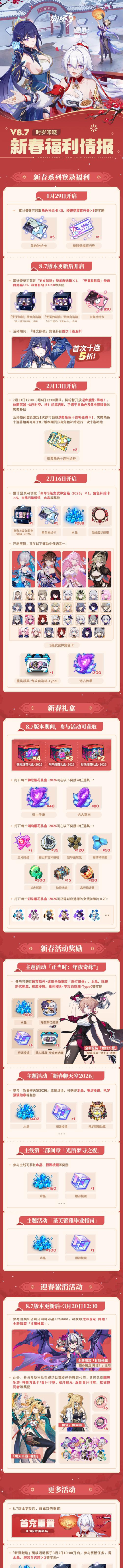 崩坏3即将迎来V8.7版本“时岁叩晓”,本次更新涵盖多项全新玩法、限时活动与资源获取途径。为帮助玩家高效规划资源、合理安排抽卡节奏与养成路径,本文将系统梳理当前测试服已确认的核心更新内容,涵盖消费回馈、补给池排期、商城上新、自选礼包、主题港口复刻及作战凭证兑换等关键模块,所有信息均基于官方测试服实装数据整理,数值与名称严格保持一致。