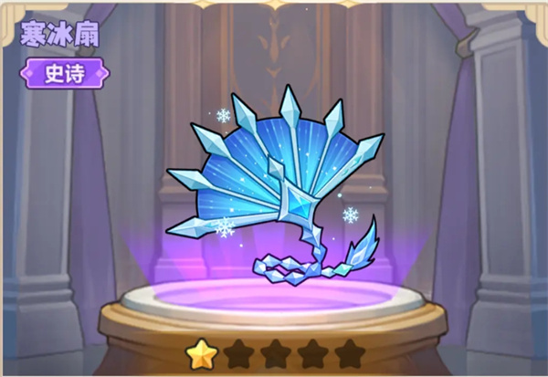 寒冰扇这是一把紫色藏品,可在英雄试炼中白嫖获得,性价比很高。