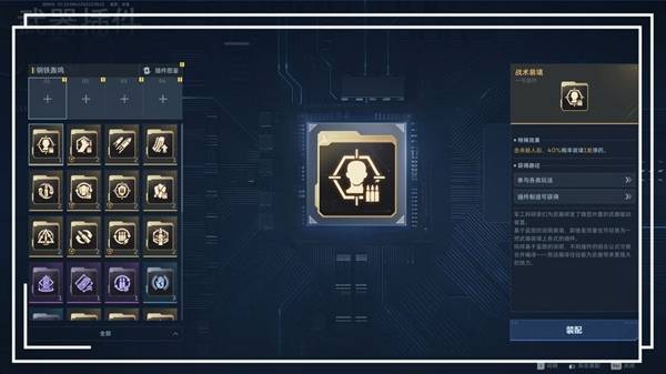 ·武器插件:是给武器叠加伤害属性,总共有四个插件,每个插件选择的方向不同,不同的插件提供不同的效果。