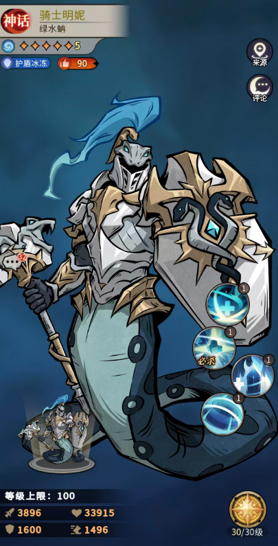 这里每个回合开始时,骑士明妮可以为自身以及攻击最高的友方单位附加【水盾】的防御,而且在提升之后变成骑士明妮受到攻击时,有100%的概率对敌人施加1层【寒冷】状态,而且每回合开始就可以为自身以及攻击最高的2名队友带来【水盾】防御,后面只要是携带【水盾】的单位受到敌人攻击,就会有50%概率对攻击者施加1层【寒冷】状态,【水盾】这个防御是可以吸收骑士明妮生命上限5%的伤害,所以他放前排也是有足够护盾可以用的哦。