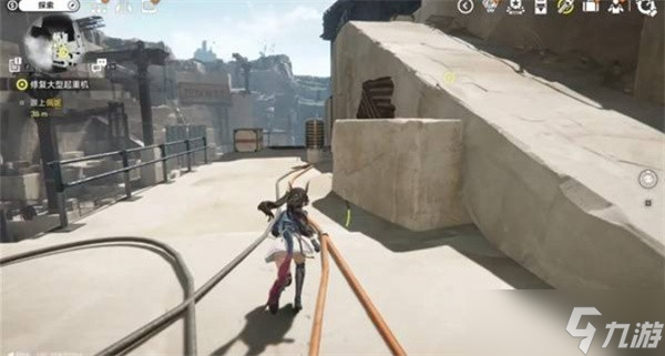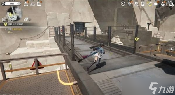 6、先移动到坡道侧面,攻击前方的机械装置,确认机关启动后,再返回坡道继续向上移动。