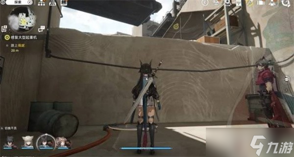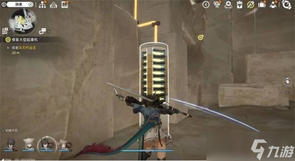 3、落地后再次攻击附近的机械装置,随后通过绳索返回上方通道。需要注意的是,旁边洞穴内藏有一个宝箱,可顺路进行收集。