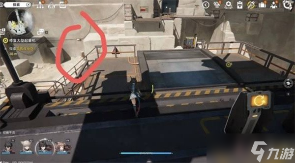 2、沿新生成的桥梁前进,到达对面后向右侧移动,找到滑绳位置并使用滑绳下降至下方区域。