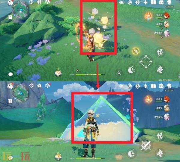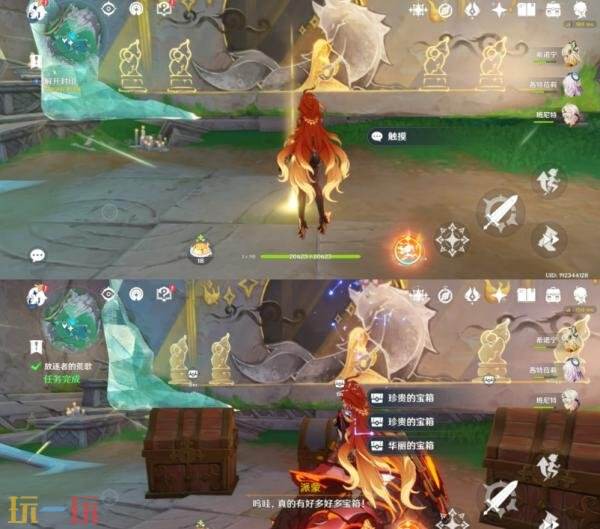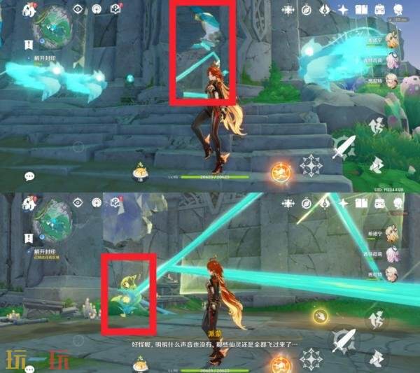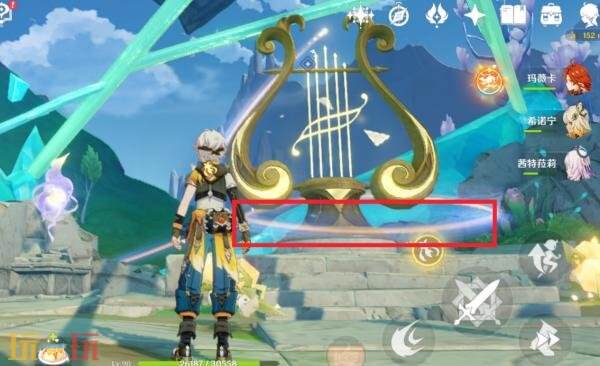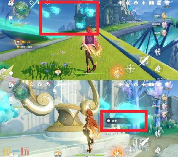 在这附近找到这种发光果实去击打中间的棱镜护罩,打破后弹奏一下这个琴