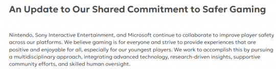 ·联合协议题名为「An Update to Our Shared Commitment to Safer Gaming(对我们共同致力于更安全游戏承诺的更新)”,本声明源自2026年发起御三家联合声明,今天是对协议的强调与补充更新。