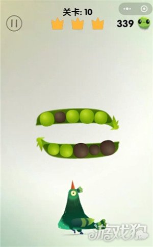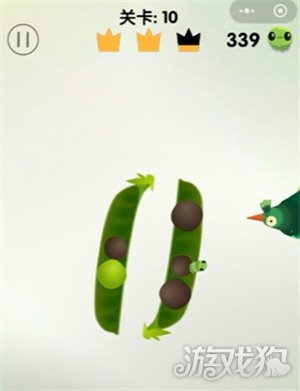 1、观察豆荚的青豆和黑豆位置,瞄准啄掉青豆。