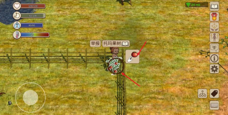 打开右下角的标签功能,这样部落内的动植物名字就会显示,名字背景会有灰色和紫色两种,灰色就是一般道具可以捡起手持,自身的在点击会根据时间来产生新的物品,再次点击带有吃的小框,就可以将其拿到手上食物,比方说有果实的果树,有蛋的鸟巢都属于紫色,能帮助拿到可使用的鸟蛋和果实。