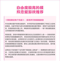 自由度极高的模拟恋爱游戏分享的内容,就给大家介绍到这里吧,无论是想要通过满足需求的恋爱模拟手游感受所具备的丰富玩法,或者是酸甜苦辣,这几款都能让大家置身于各种各样的环境,遇到不同类型的异性。