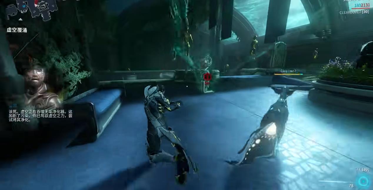 成功净化无垢装置后,玩家只要持续击杀无垢装置范围内的敌人,就可以减少覆涌等级的计量条,成功完成4个无垢装置的净化后即可返回羽化之穹。回到羽化之穹与奎因交谈,可以接取到新任务,阻止虚空洪流。该任务难度相对较低,玩家仅需收集地图中飘散的修复凝剂,修复3处裂口即可,幻蝶仙灵这种机动性较强的战甲,可以快速完成。完成后再次返回羽化之穹与奎因交谈,可以得到Grineer正在破坏圣物装置护盾的信息,玩家随后需要前往保护圣物装置。在虚空决战中,场中有着防御炮台和抑制装置两层保护,玩家可以使用空投的氩烯建造防御炮台,而抑制装置则能阻止敌人强化,在场中的所有抑制装置都被敌人破坏之后,它们就会进攻最后的圣物装置。