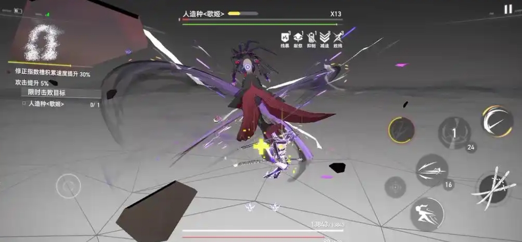 应对时歌姬释放音波时我方一般都跟它保持了一定距离,此时根据地面的范围预警进行目押闪避就行,如果是贴身作战就保持左右移动基本不会被音波打中。招式二是歌姬会向后翻越一段距离并释放短音波攻击,这时地面会有长距离锥形范围提示,短音波跟长音波的区别在于两者的起手动作不一样,歌姬向后移动就能判断它要使用短音波,而且短音波只有一段攻击判断,这个招式在贴身作战时触发频率非常高,因此近身作战时要注意范围提示的视角,最好的应对方式是稍微往左右两次移动就能轻松躲开。