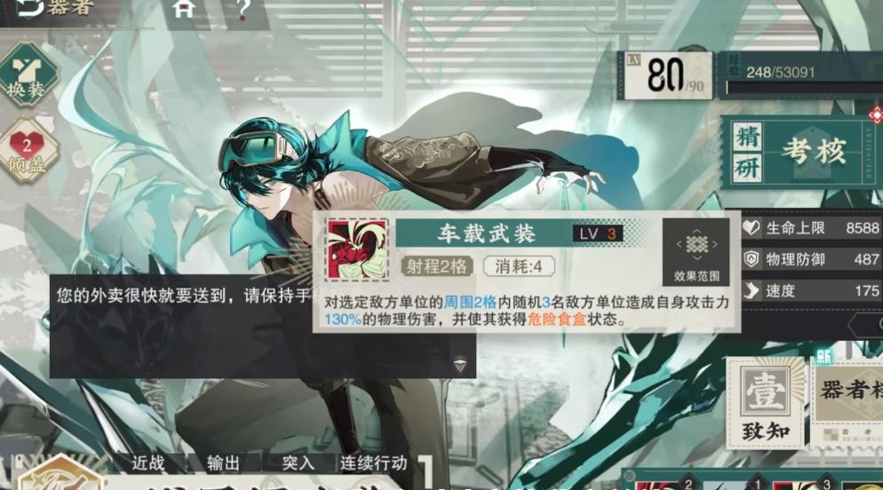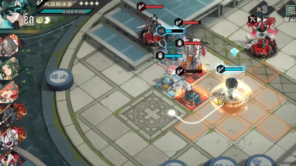 战国铜冰鉴是稀有度为金色的角色,常规攻击与职业技能和轻锐类角色并无明显差异,核心特色集中在大招与被动技能上。大招名为车载武装,效果是对选定目标单体周围至多三名敌人,造成基于自身攻击力百分比伤害,在技能造成伤害后还会对敌方施加一层危险食盒状态。而该状态不仅能减少目标1点移动力,限制其走位移动的灵活程度,而且在被标记的敌人进行移动时会触发范围伤害,对周围一圈内所有单位造成物伤,具体数值基于铜冰鉴本身的攻击力决定。