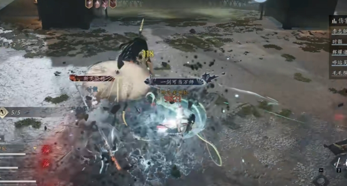 机制四放马过来通常会在无名将军接近半血时触发,这个机制需要一名玩家和它进行单挑,外围的其他队友需要把击鼓的小兵全部清理掉,该机制的难点在于出现之前会触发毁灭猛击,此时可以考虑在第二个毁灭猛击时直接牺牲掉承伤位,这样其他四个队友身上就没有流血伤害了。机制五横扫千军是无名将军会进行连续横扫,打中玩家能回复大量战意值,稍微注意限制或者躲避就行,机制七风暴投枪一般是战意值快要满了时才会使用,被点名的玩家自己拉到角落就可以了。