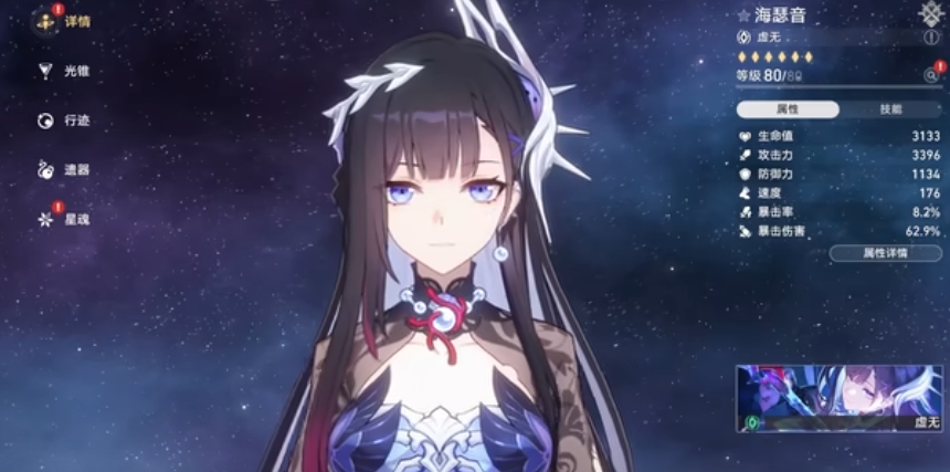 海瑟音的额外能力一珍珠的琴弦属于强度提升型的能力,是一个效果命中转向伤害的转模,高于百分之六十时每多出百分之十海瑟音的伤害就能提升百分之十几,最多百分之九十,海瑟音命中需要堆到百分之一百二才能吃满这个效果。海瑟音的属性加成各种是有效果命中的,再加上光锥效果其实很容易就能达成。额外能力二盛会的泡沫是瞬时爆发型的一个能力,海瑟音释放终结技时敌方所有DOT立刻结算当前百分之一百五的伤害,该效果对压血线或者斩杀有很好的效果。