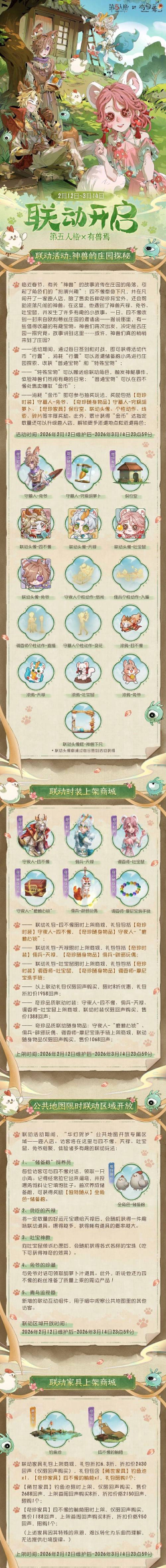 关于第五人格有兽焉联动活动主要就这么多,此外还有一些联动礼包,例如直接用回声购买的时装和随身物品,部分礼包还有8折优惠。专属家具也有同步礼包上架,可以用回声直接买,大家可以根据自己的喜好选择入手。