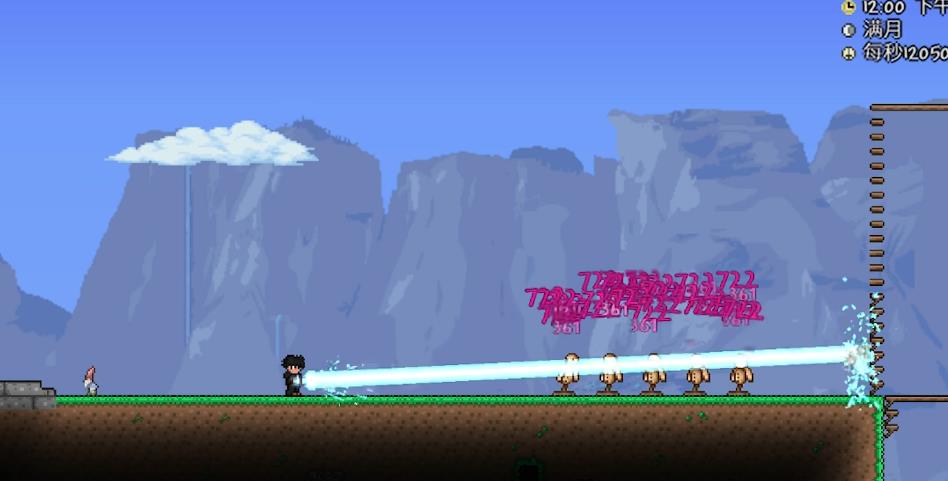 可以明显看到激光的转向较为生硬,很难做到大范围扫荡敌人。每秒三次的蓝耗消耗速度很快,如果要是没有减少魔力消耗装备的话,射完一轮激光需要消耗大概260点魔力值。在打完世纪之花后,穿上幽灵套也才280点魔力值,上了减魔耗后可以让魔力消耗变成十,但依旧没法在不吃蓝药的情况下射完两个循环,充能爆破炮的唯一优点就是激光的持续无限穿透。