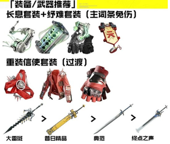 主用套装:长息喜装 + 纾难套装(主词条优先免伤)