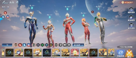 2、核心替换:用闪耀型赛罗替换普通赛罗,群体输出+控制拉满;用镜子骑士替换强力型迪迦,强化阵容功能性联动。