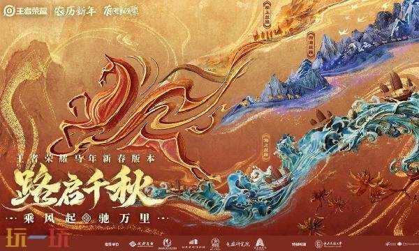 王者荣耀新春主题是:《路启千秋》,以丝绸之路”为主题原型,从穿越河西走廊通往西域的陆上丝绸之路、翻越崇山峻岭的西南丝绸之路、扬帆远航的海上丝绸之路中汲取灵感,以不同时间和地域里三条丝路上的人文风物进行设计演绎,致敬那条伟大道路的璀璨华彩。
