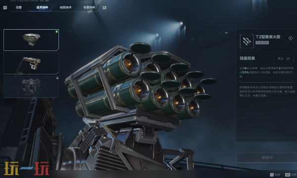 多联装T3型火箭发射器(最优) 堪称核弹级”挂件,多发导弹具备超高单发伤害,一发即可秒杀单个敌方单位,在三款战术挂件中,容错率与爆发伤害均处于顶尖水平,能大幅提升机甲对集群和重甲目标的打击能力。