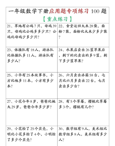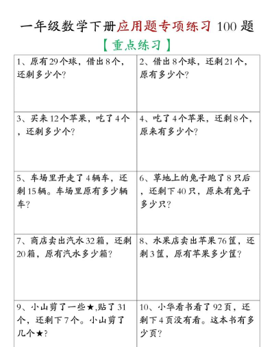 上述工具均经过实际教学场景验证,既能满足“一年级应用题数学100道”的集中训练需求,又注重解题习惯养成与数学思维启蒙。坚持每日限时练习+错题复盘,可显著提升审题准确性与运算稳定性,为后续数学学习筑牢根基。