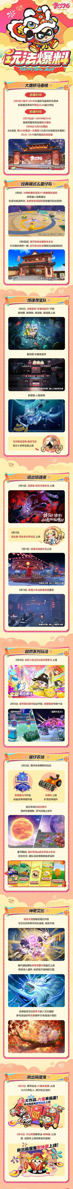 第二项核心活动为“蛋愿成真 分2亿”红包计划。版本更新后,玩家需在游戏内收集六小只角色,合成幸运符。成功合成后开启幸运符,随机获得66至666枚蛋币红包。所有蛋币均为限时道具,须在有效期内使用完毕。同步开放的新春每日任务同样具备高性价比,连续参与可累计获得360枚限时蛋币,任务难度适中,覆盖新手与资深玩家群体。