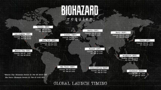 距离《生化危机》系列第九部正统续作发售仅剩两天,卡普空官方于今日通过社交平台正式发布了《生化危机:安魂曲》的全球发售时间地图。