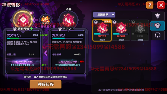 注意:神骇转移后作为消耗的咒文石会保留5%的基础神骇,图中文本为测试服bug。