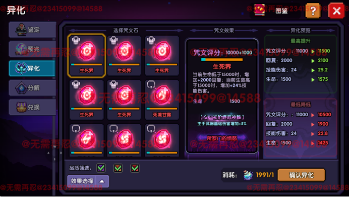 注意:一个咒文只能异化一次,且不能回退结果,慎重!慎重!