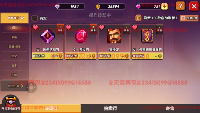 市场会默认将价格低的商品排在前面(左上为前),对于材料类商品,优先选择价格低的进行购买即可,而对于唯一类别商品,如咒文石,因为咒文石属性不同,不一定价格越低就越好,可以点开咒文查看其详细属性。