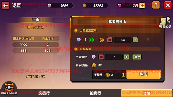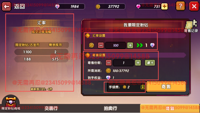 出售混沌千域掉落的道具,用限定粉钻购买其他玩家寄售的粉钻;