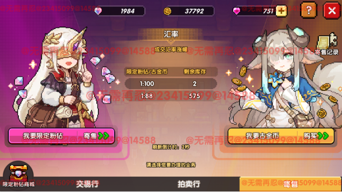 作为交易行主要的流通货币,寄售成限定粉钻。