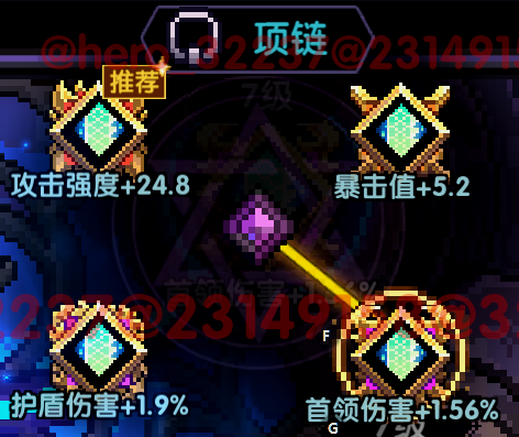 项链位置推荐选择:在开荒期护甲穿透不够时选择护甲穿透,护甲穿透达标时则选择暴伤。
