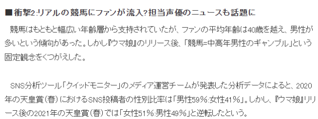 ·《赛马娘》游戏的社会效应之二:完全推翻了原本固有的中年赛马圈。