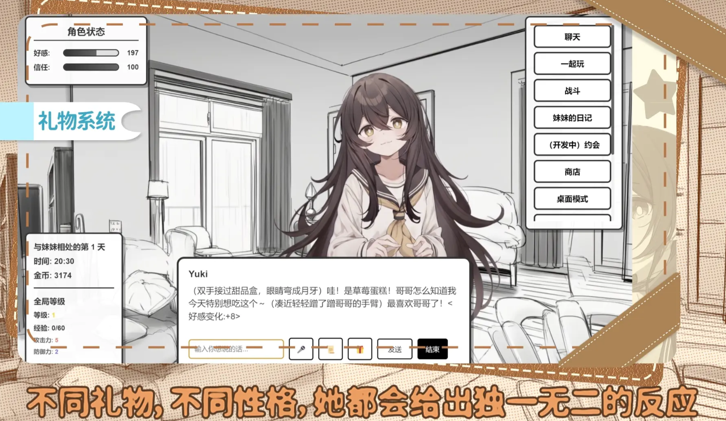 作为一款主打陪伴体验的文字类游戏,《妹居物语》弱化传统数值战斗,强化心理节奏把控与叙事张力。例如,在特定时间点收到Yuki发送的语音消息、查看她手绘的涂鸦日记、回应她关于梦想与恐惧的深夜提问……这些细节共同构成一个有呼吸感的虚拟生活空间。游戏内所有角色行为均受底层参数影响,如“情绪稳定性系数”“依恋倾向等级”等隐藏变量,让每次重玩都能呈现差异化情感路径。