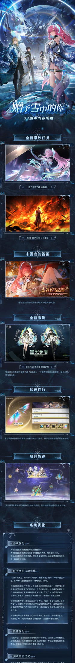 鸣潮3.1版本活动就介绍到这了,版本活动除了带来了有趣的限时玩法,丰富的福利外,还有各种角色和武器的限时唤取,大家如果想要的话,一定要记得及时参与,最后也希望大家都能拿到想要的奖励。