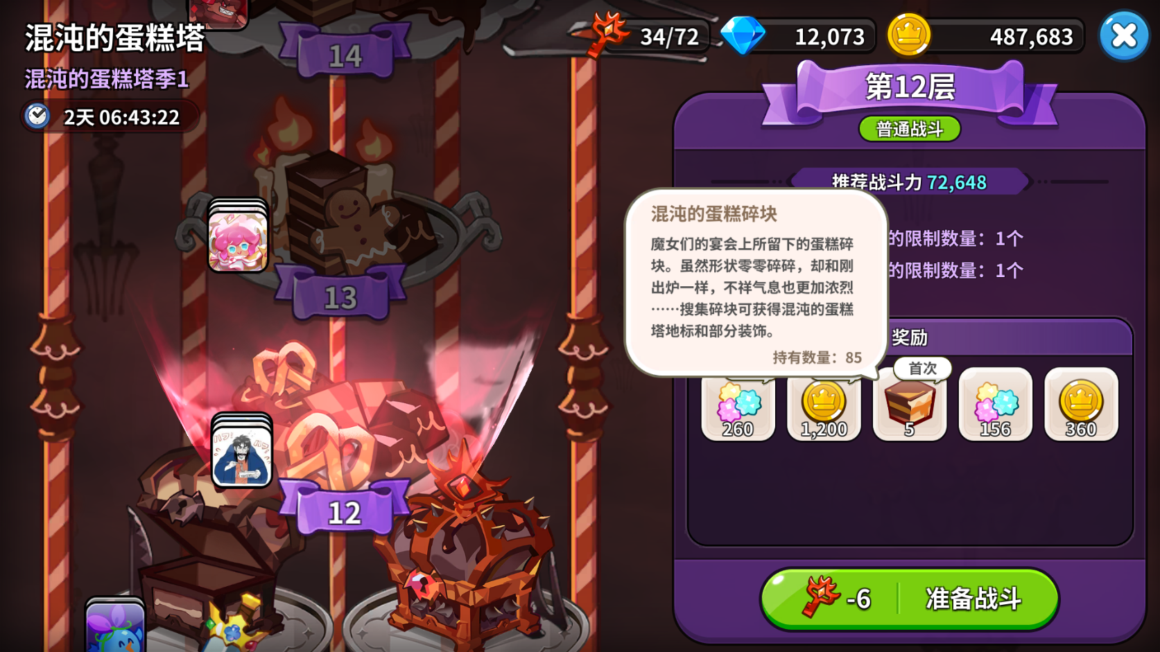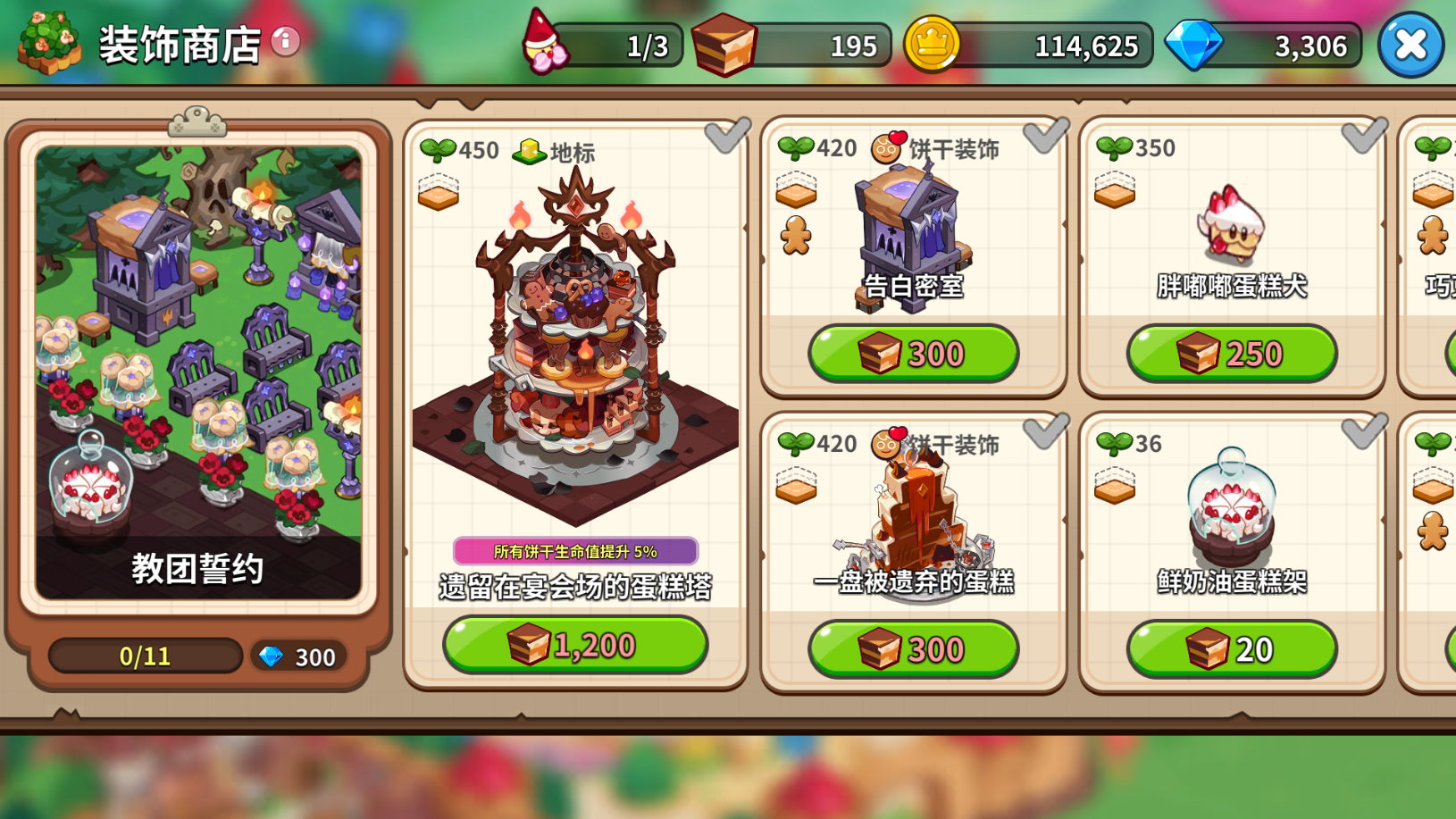 另外就是混沌的蛋糕塔一定要每天都刷,不然钥匙溢出就浪费了。而且刷混沌塔可以获得“混沌的蛋糕碎块”,这东西是购买“教团誓约”系列装饰所必须的材料。