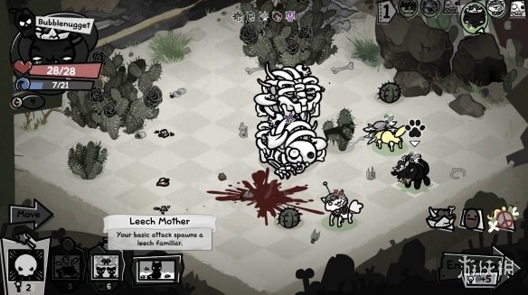 在《喵喵的结合》中,水蛭流是依靠召唤物数量取胜的玩法。核心是利用死灵猫的普攻召唤水蛭,再通过特定道具将普攻转化为低费技能,实现一回合爆兵铺场。当水蛭大军成型后,敌人将在茫茫吸血虫海中无力挣扎。