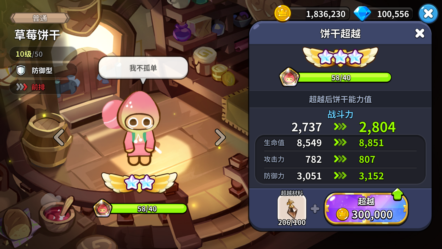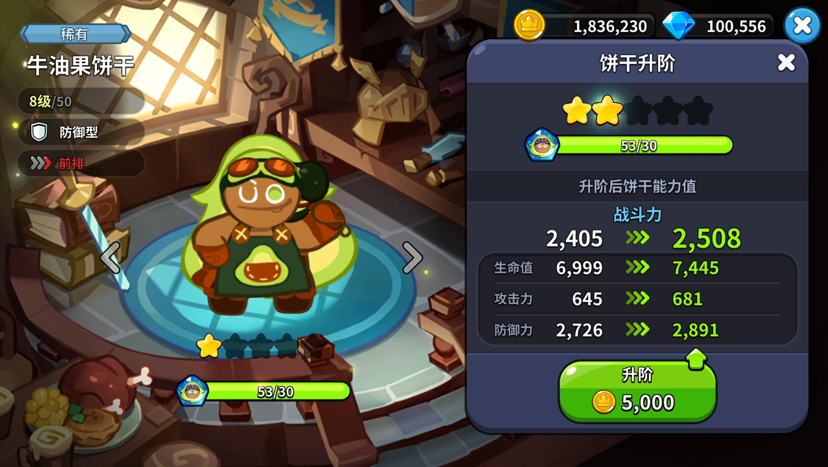 进阶基础星数是5星,5星满了之后就开始超越,目前最高超越5星,所有品质的饼干进阶消耗一样。
